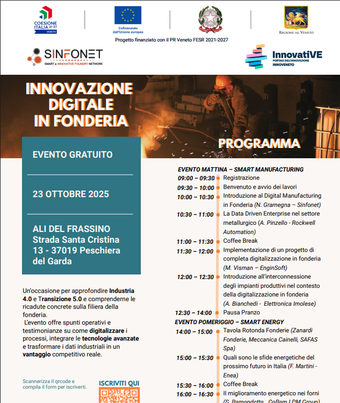 L’incontro che si terrà presso l’hotel Le Ali del Frassino a Peschiera del Garda, sarà un’occasione rivolta a fonderie, aziende della filiera per la produzione di componenti e prodotti metalmeccanici, ma anche a Operation Manager, Energy Manager, Responsabili di Produzione e Controllo Qualità.